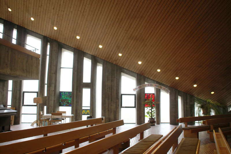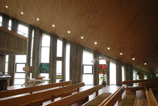 Ein solcher Lichtstreifen zeigt beispielsweise auch die von Walter Ruff 1966/1968 errichtete Pauluskirche in Bietigheim, die zudem noch mit gelben Lichtstreifen an den Kirchenwänden ausgestattet ist, um auf diese Weise im Innenraum bestimmte Lichtakzente zu setzen und diesen auf diese Weise optisch zu beleben.(90)