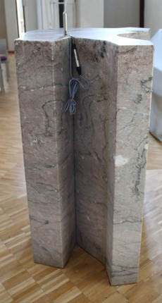Im weiteren Verlauf des 20. Jahrhunderts werden die Kompositionen der Kanzeln schlichter und nüchterner, wie anhand der Kanzel in der Johanneskirche in der Korber Höhe, ein Stadtteil von Waiblingen, deutlich aufgezeigt werden kann.(64) Die 1987/1988 von Rotraud Hofmann geschaffene Kanzel besteht aus zwei schalenförmigen Teilen aus Marmor, die ineinandergreifen, sich aber nicht überschneiden oder kreuzen, sondern sich lediglich einander anschmiegen. Zur Gemeinde hin ist die Form konvex gewölbt und damit geschlossen, zum Altarraum hin ist sie konkav geschwungen und damit geöffnet.