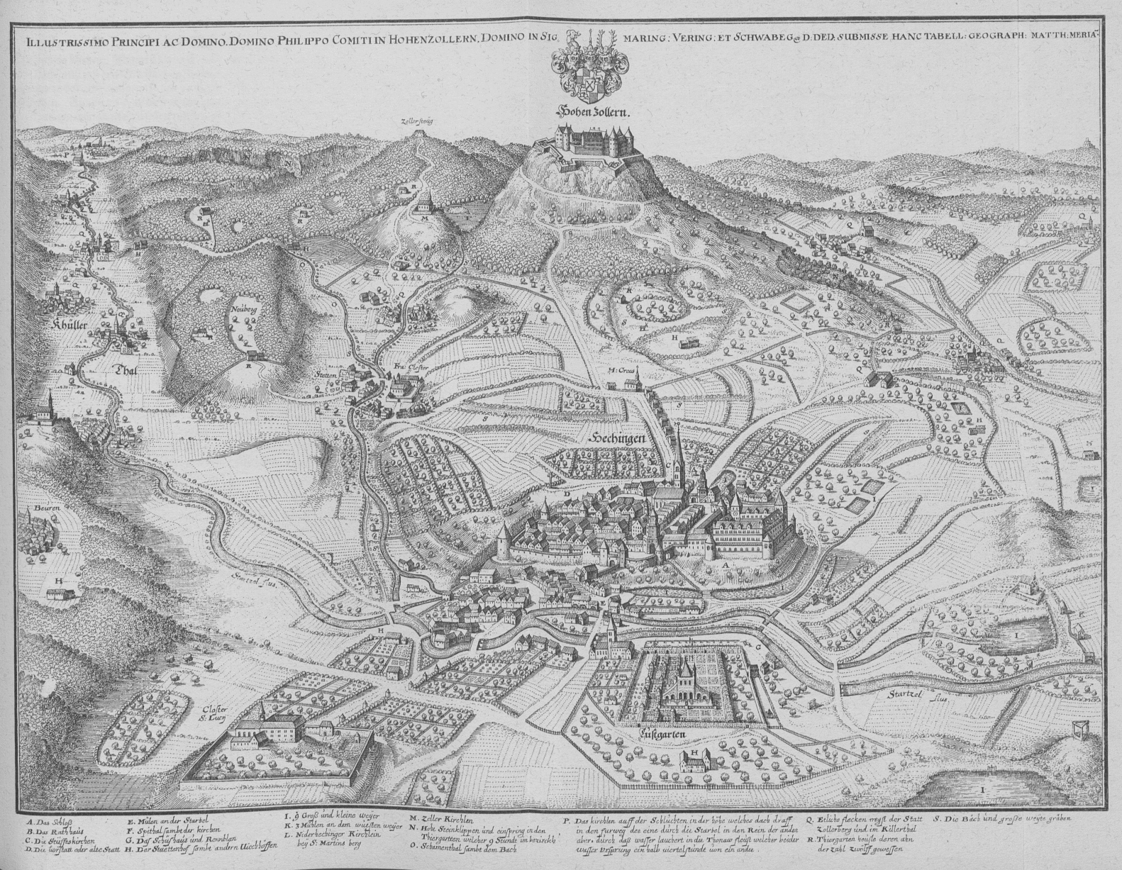 Ansicht der Burg Hohenzollern Merian, Topographia Sueviae (1643)