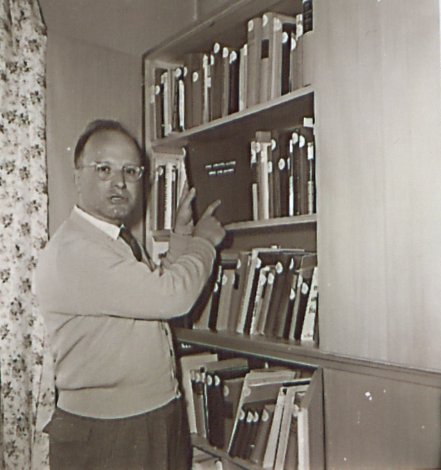 Fritz Majer-Leonhard beim Aufbau der Bücherei der Hilfsstelle für Rasseverfolgte (50er Jahre)
