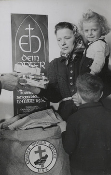 Ohne die Arbeit des Hilfswerks wäre es nicht möglich gewesen, das millionenfache Leid der Flüchtlinge und Heimatlosen nach dem Zweiten Weltkrieg zu lindern. Um die Menschen überhaupt mit den lebensnotwendigsten Gütern wie Lebensmitteln, Kleidung und Medikamenten versorgen zu können, bat das Hilfswerk auch in evangelischen Gemeinden im Ausland um Spenden.