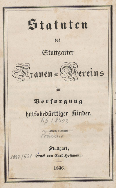 Einer der ersten wohltätigen Frauenvereine wurde 1834 in Stuttgart gegründet