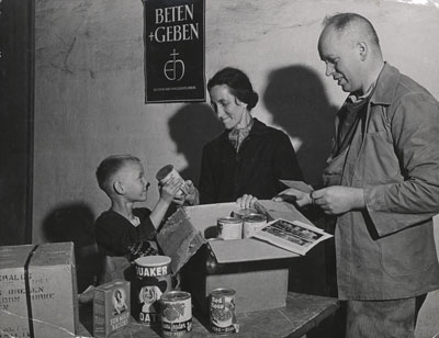 Verteilung von Hilfsgütern durch das Hilfswerk der evangelischen Kirche in Deutschland, 1945