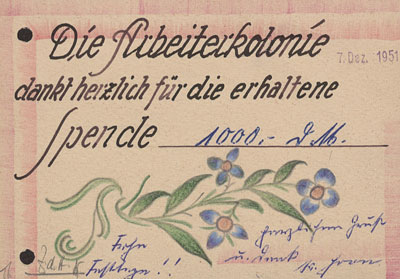 Spendendank aus der Erlacher Höhe, 1951