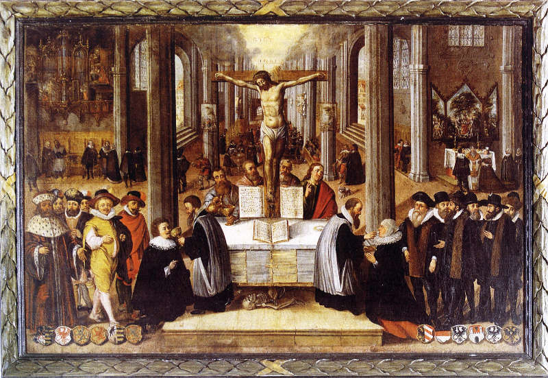 Erinnerung an das Augsburger Bekenntnis von 1530 (Konfessionsbild). Gemälde in der Stadtkirche, um 1600