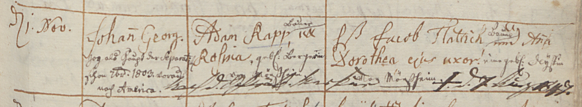 Die unruhigen Zeiten und ungünstigen Vorzeichen im Herzogtum Württemberg sah Johann Georg Rapp selbst als Aufforderung Gottes zur Auswanderung in das Gelobte Land Amerika an. So verkaufte er im Sommer 1803 den überwiegenden Teil seiner Grundstücke in zwei Partien, um die finanzielle Grundlage für seine Auswanderung zu schaffen. Im Juli 1803 reiste er mit seinem Sohn von Iptingen nach Amerika ab, ohne jedoch sein Bürgerrrecht in Iptingen aufzugeben.(104) Am 7. Oktober 1803 kam er in Amerika an. Als dann im Januar 1804 die neu erlassene Kurfürstliche Verordnung, betreffend die Separatisten, auf dem Rathaus in Iptingen öffentlich verlesen wurde, mußten die Auswanderungswilligen dies als letzten Anstoß für ihr Vorhaben empfinden.(105)